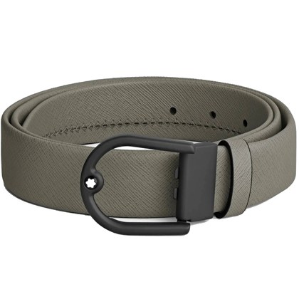 Кожаный ремень 35 мм из кожи серого цвета, пряжка в форме подковы от магазина премиальных ручек Premium Pens в Сергиевом Посаде.